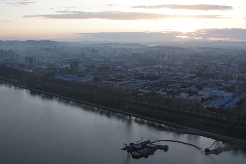 Сверху вниз, в окно. Открыв окно, чтобы смотреть было лучше. Высоко, на острове, среди широкой реки. Вокруг, с каждой минутой, дымка из беззвучной пелены (но не такой, как в мрачном Беджинге) раскрывала кучу подробностей являющейся незнакомой жизни.