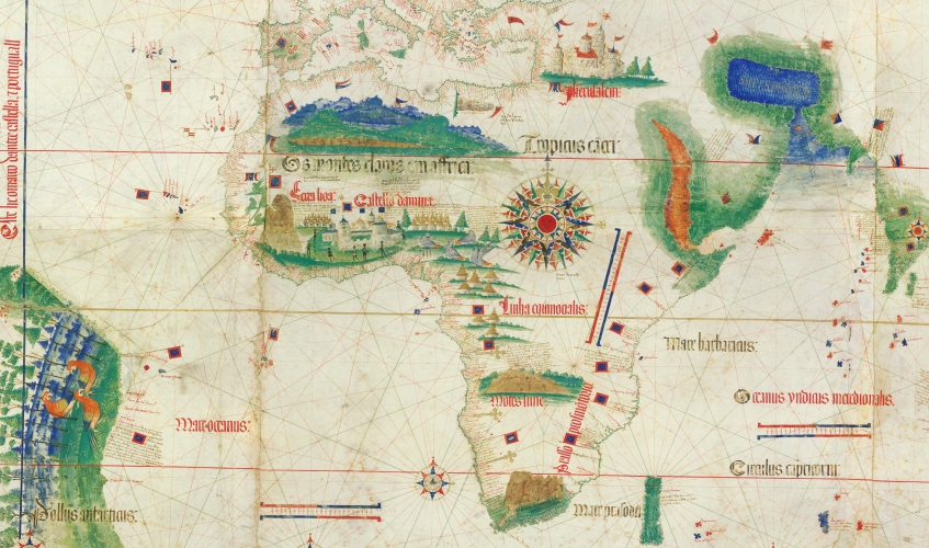 Фрагмент «Planisfério de Cantino». Ангола (обставленная португальскими "падранами" со всех сторон) сегодня является единственной страной, где официально запрещено мусульманство.